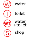 Turn until the arrow is pointing along the dotted route, and walk in the direction of the arrow. The dot will move to show your current position. Press and hold the target icon to turn off map centering.